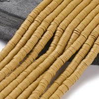 Плоские круглые бусины - чипсы (диски, рондели heishi) ручной работы из полимерной глины (пластики). Бусины могут немного отличаться по форме и размеру. Оттенок может отличаться от фотографии. Бусины довольно мягкие, гибкие, напоминают каучук. Цвет: светло-коричневый (от горчичного до насыщенно бежевого в разных поставках). Цена за низку длиной около 43 см, около 350-400 бусин.