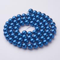 Стеклянные бусины с покрытием под жемчуг синего цвета. Бусины могут немного отличаться по форме и размеру, быть слегка приплюснутыми у отверстия. Возможны небольшие царапинки. Оттенок может немного отличаться от представленного на фото. Цена за низку 80 см, около 70 шт.