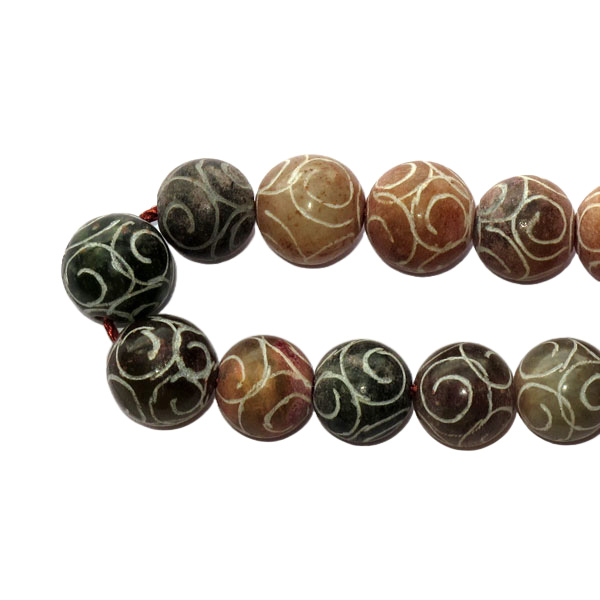 Низка бусин из натурального агата с выгравированным вручную узором. В низке около 41 бусины. Бусины могут незначительно отличаться по размеру и форме. Цена за низку.