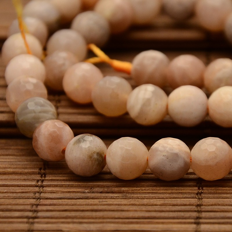 Каменные граненые бусины - шарики. Натуральный гелиолит (солнечный камень), подвид полевого шпата. В низке 23 бусин. Цена за низку.