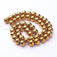 Бусины из окрашенного (металлизированного) гематита, цвет золотистый. Гематит создан искусственно, по составу аналогичен натуральному. В низке около 50 бусин. Цена за низку.
