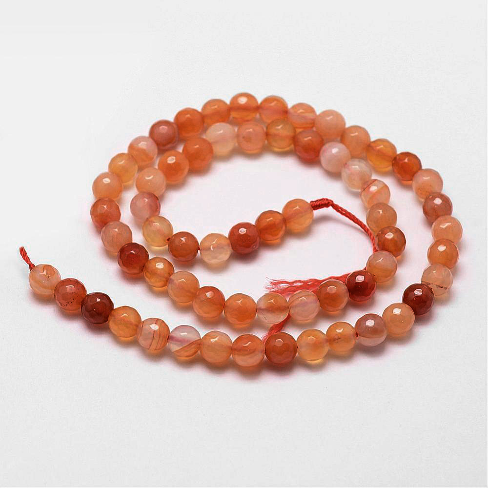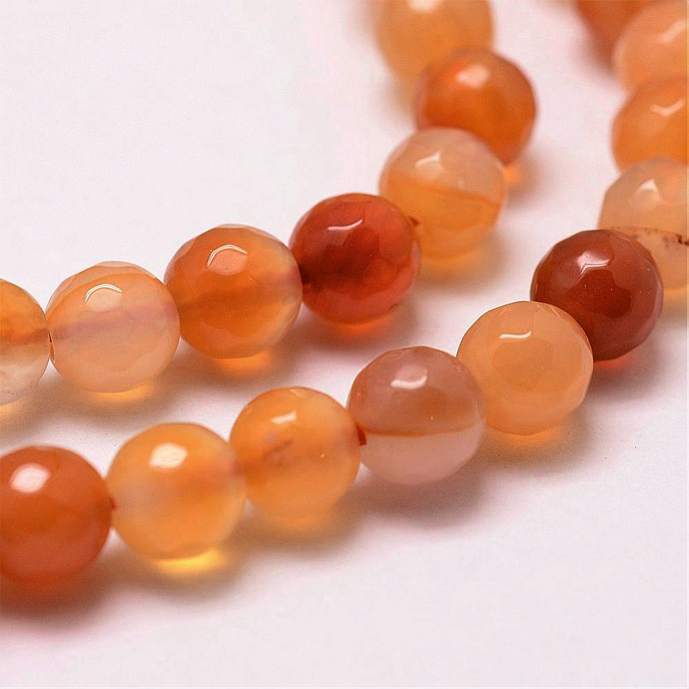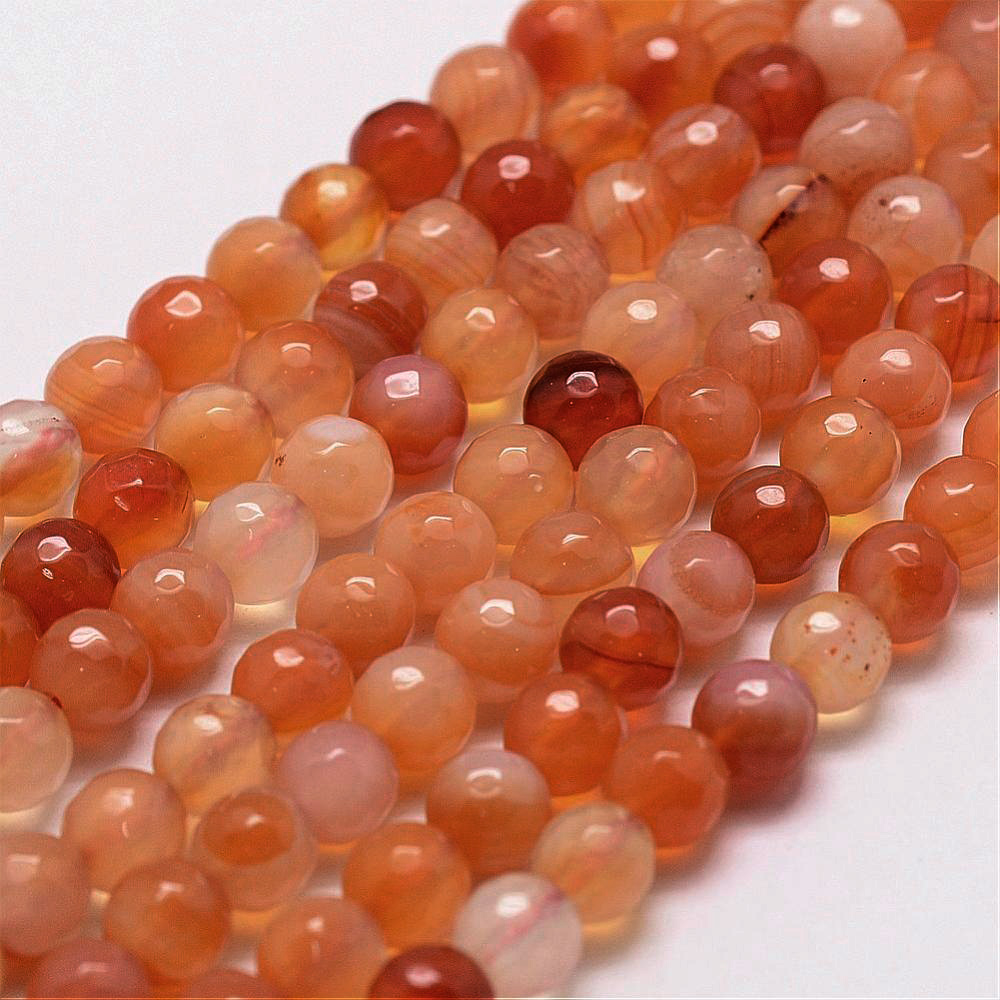 Граненые бусины из натурального камня - тонированного сердолика. Часть бусин однотонные, часть полосатые. Бусины могут немного отличаться по форме и размеру. Оттенок может отличаться от фотографии и в разных поставках. В низке около 46 бусин. Цена за низку (низки формируются без проверки каждой бусины на дефекты и без подбора по цвету).