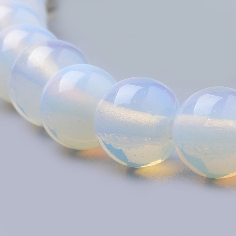 Круглые гладкие бусины - лунный камень (имитация из стекла). Бусины могут немного отличаться по форме и размеру. Оттенок может отличаться от фотографии и в разных поставках. Низки формируются без проверки каждой бусины на дефекты. В низке около 30 бусин. Цена за низку.