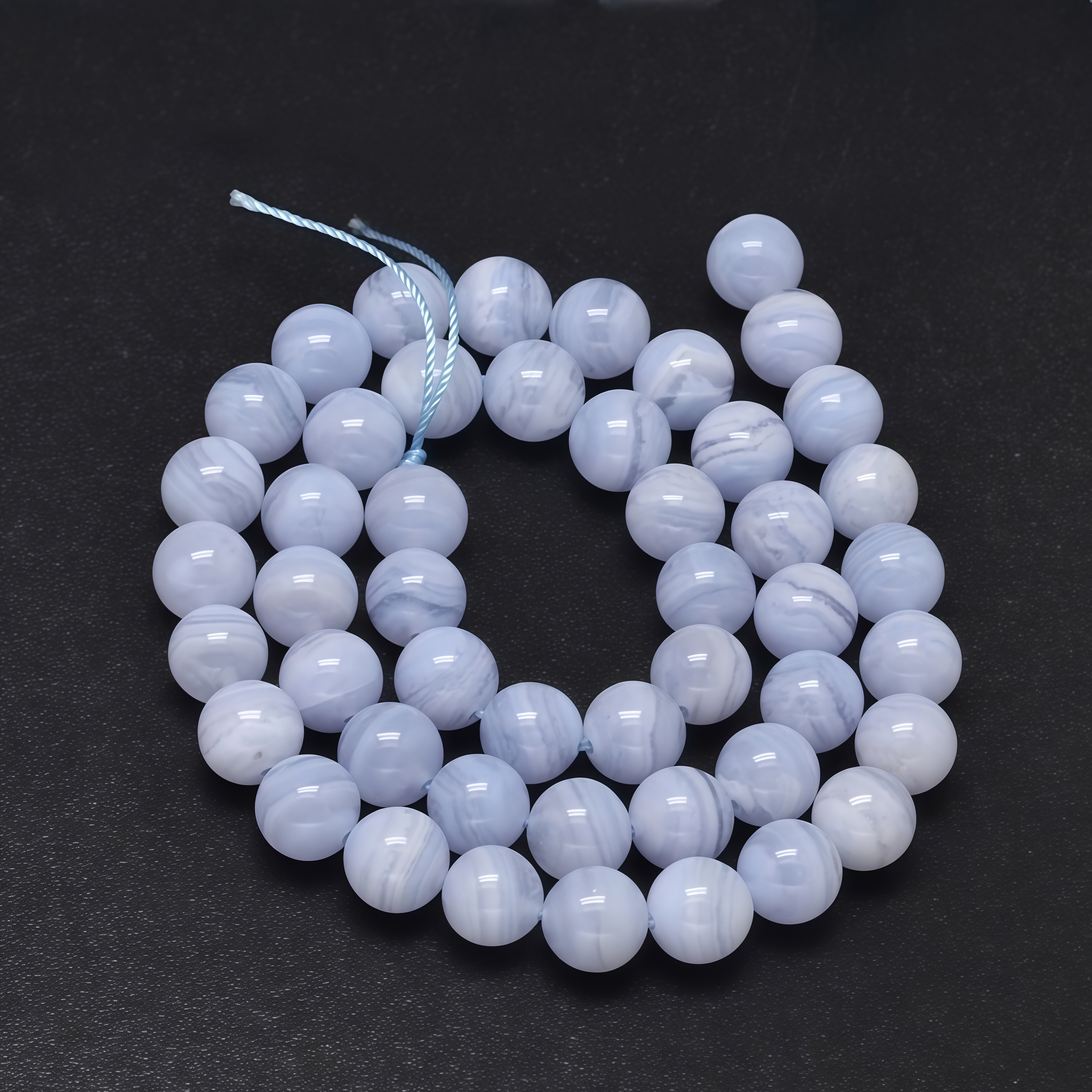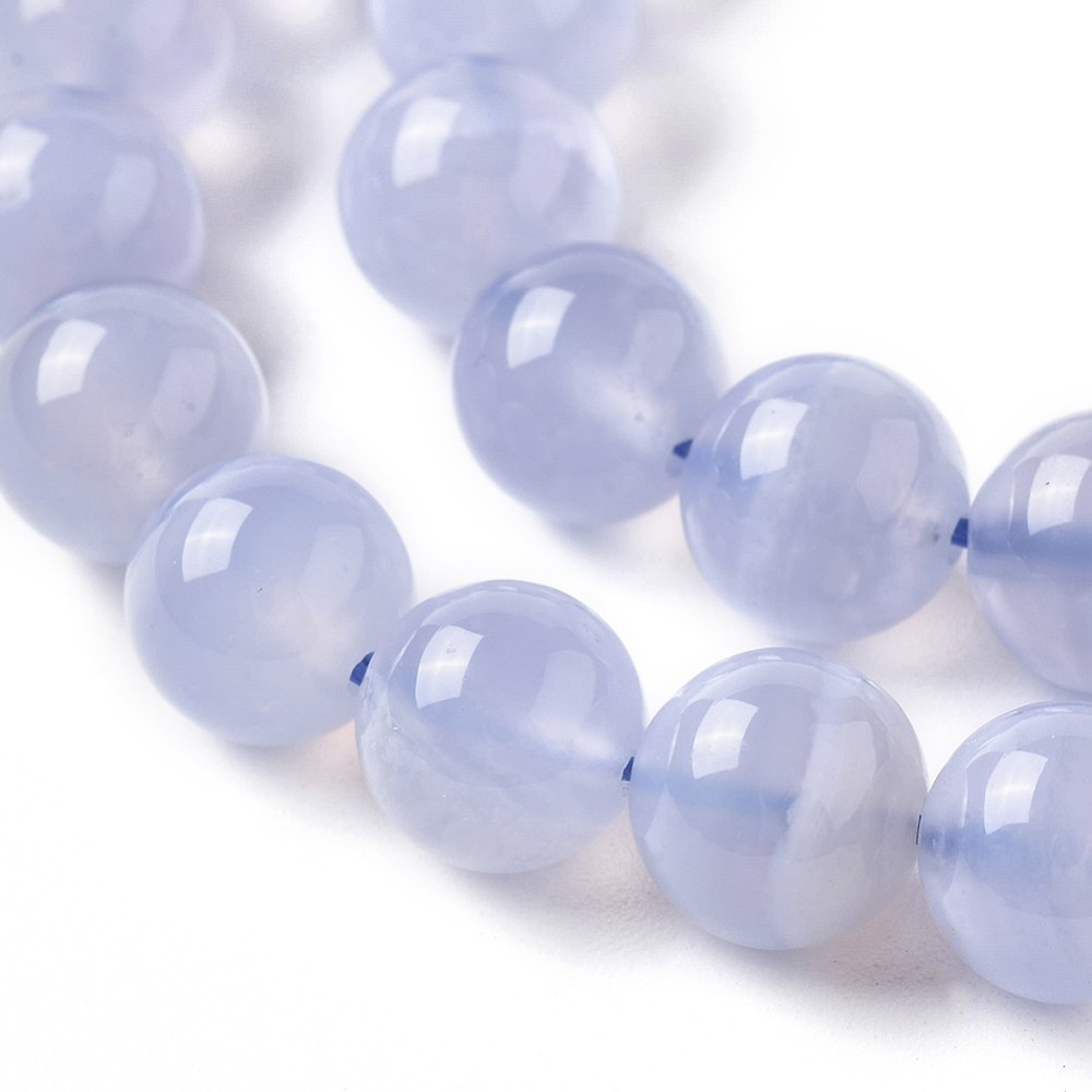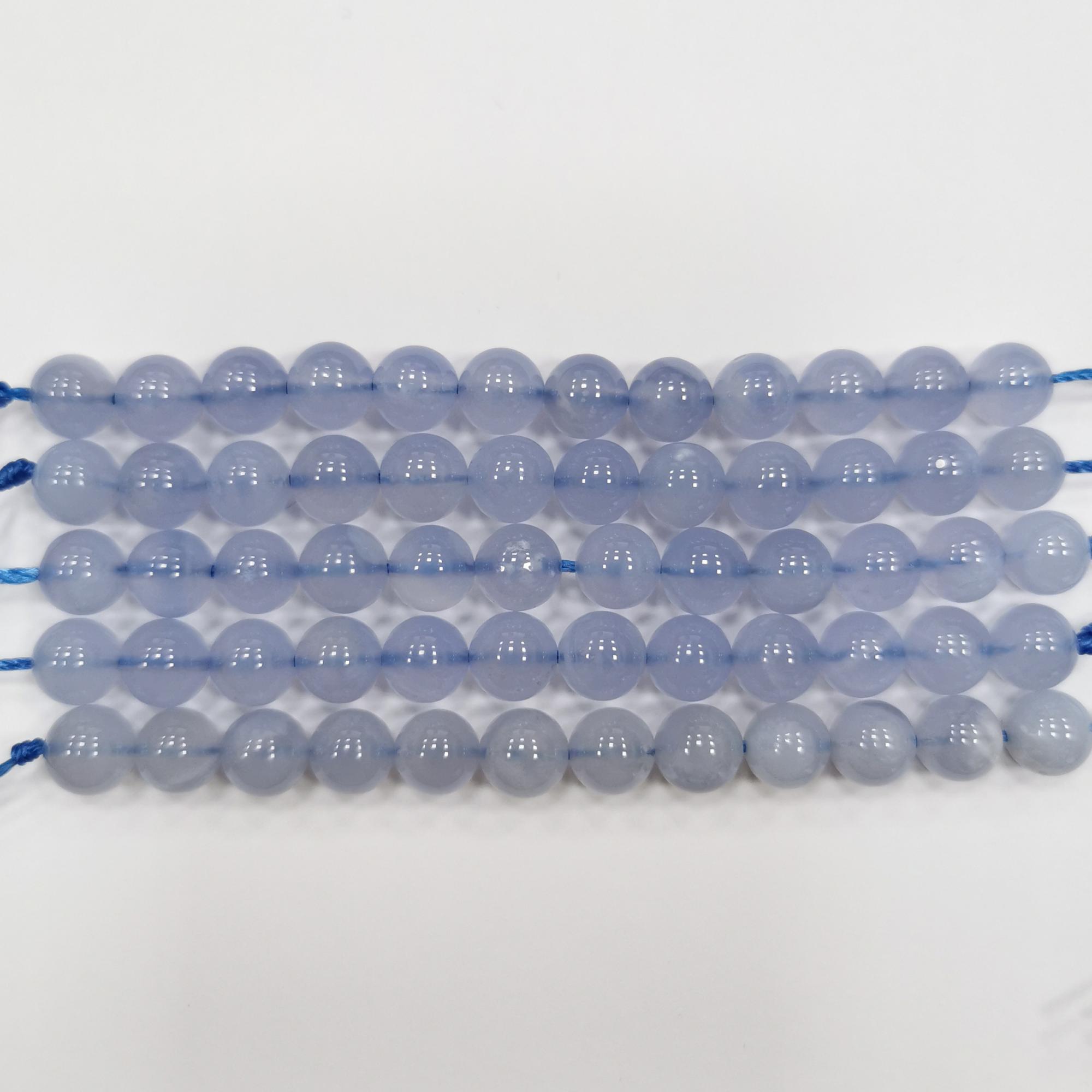 Гладкие круглые бусины из натурального камня - сапфирина (сине-голубого подвида халцедона). В последней поставке бусины почти без полосок. Бусины могут немного отличаться по форме и размеру. Оттенок может немного отличаться от фотографии. Цена за низку длиной примерно 9 см. В низке около 12 бусин, низки формируются без проверки каждой бусины на дефекты.