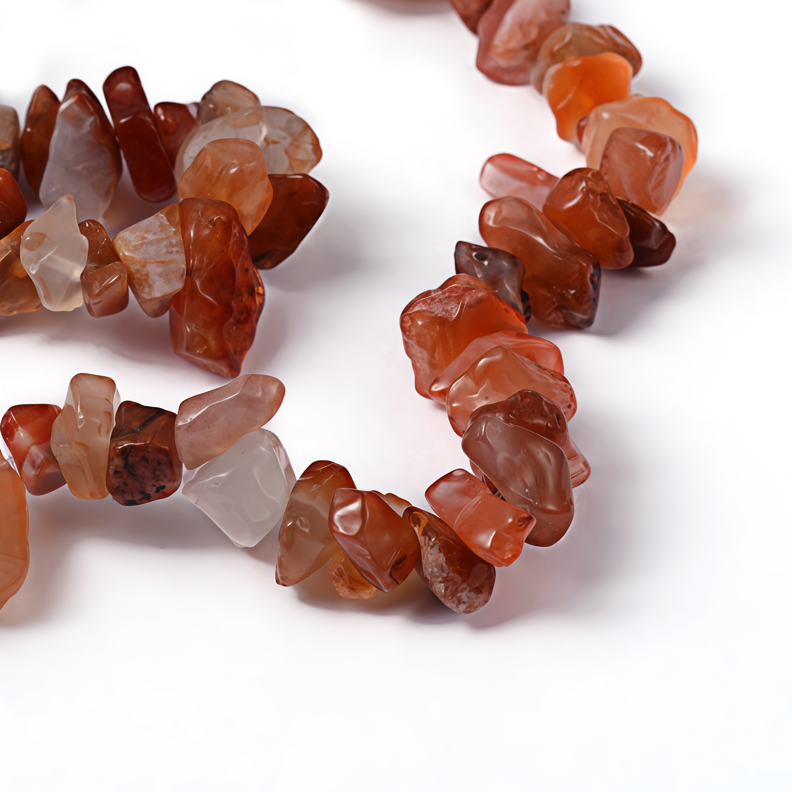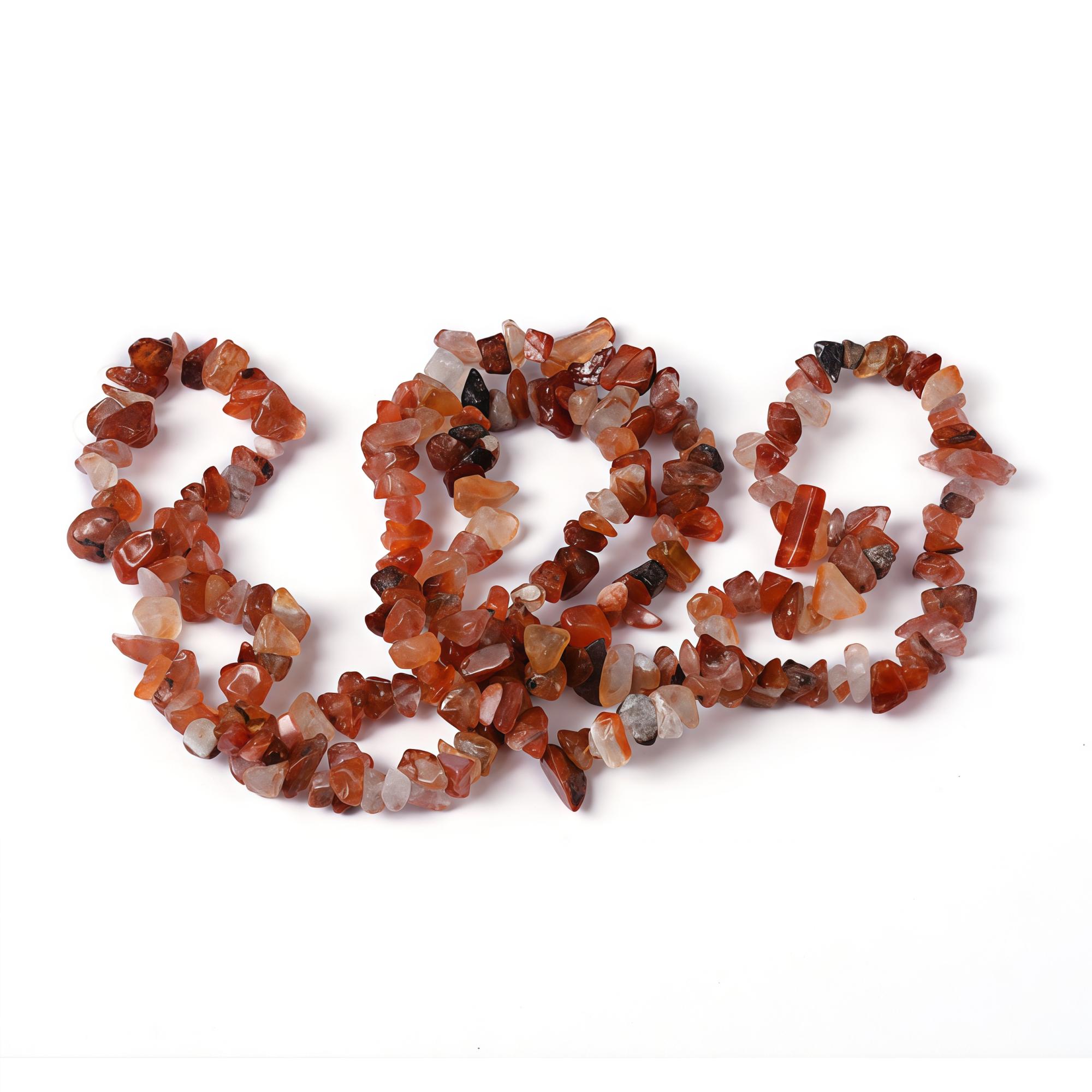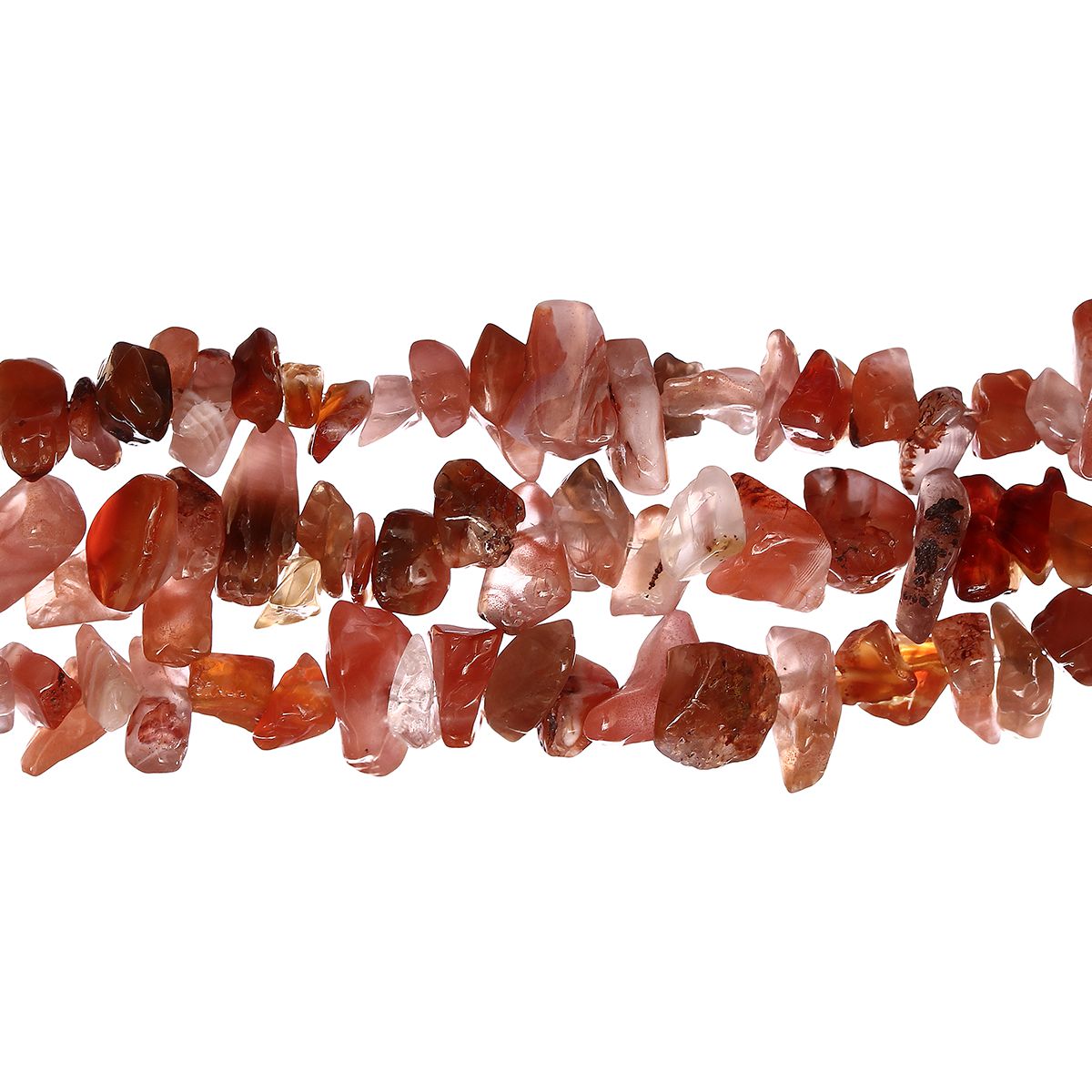 Низка бусин из натурального оранжево-красного сердолика (карнеола, карнелиана). Бусины - сколы неправильной формы. В низке около 260 бусин. Бусины отличаются по форме и размеру. Цена за одинарную низку 85 см.