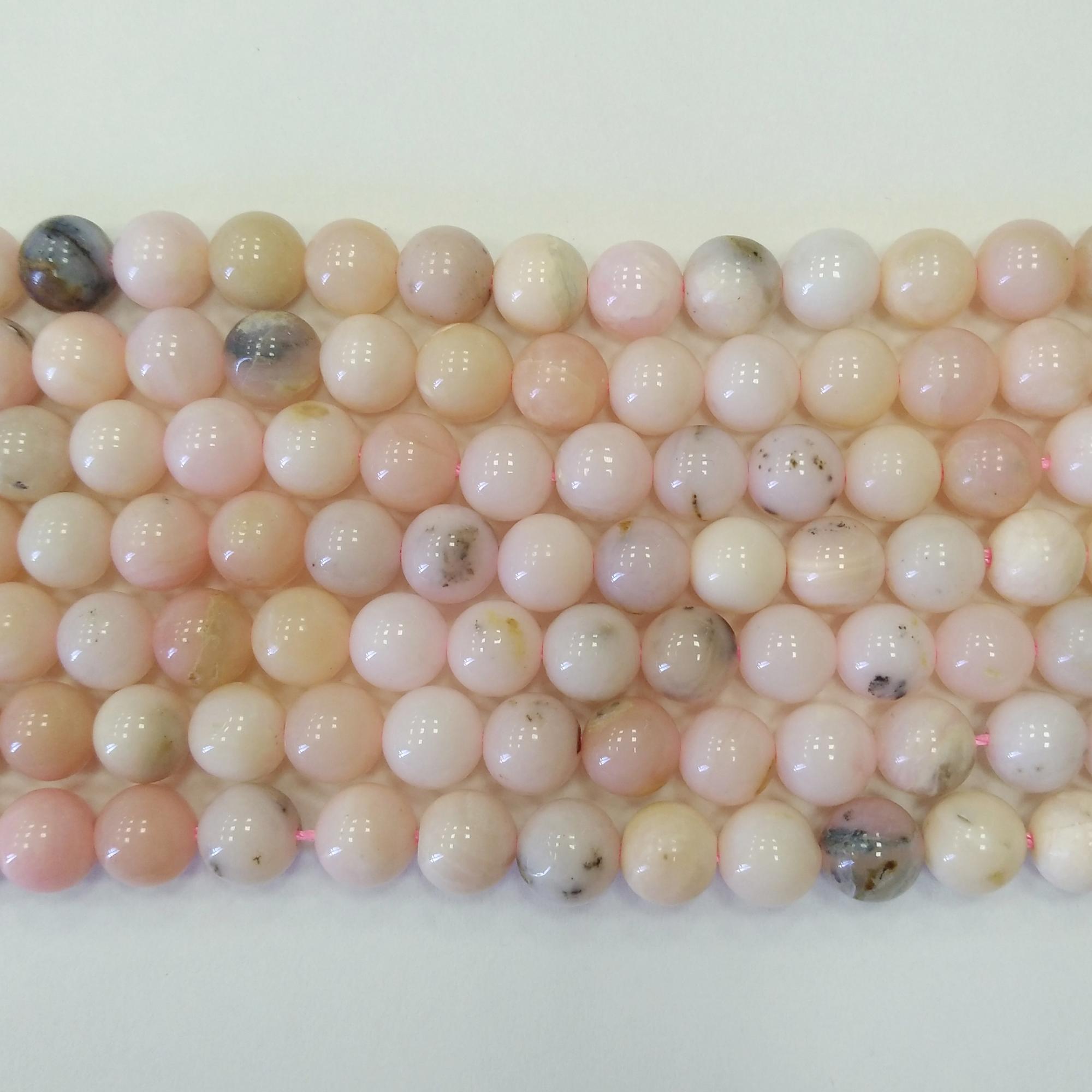 Низка круглых гладких бусин из натурального камня - розового опала. В низке около 31 бусины. Оттенок может немного отличаться от представленного на фотографии. Цена за низку.
