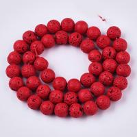 Бусины из натуральной вулканической лавы (вулканического туфа), окрашенной сверху в красный цвет. Оттенок может отличаться от фотографии и в разных поставках. Бусины матовые. Могут немного отличаться по форме и размеру. Цена за низку, около 60 бусин (низки формируются без проверки каждой бусины на дефекты).