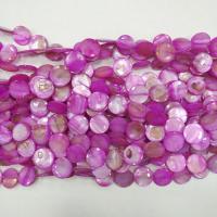 Круглые бусины-пластинки из натурального тонированного перламутра ярко-розового цвета. Оттенок может отличаться в разных партиях. На бусинах есть темные пятна и неровности естественного происхождения. Бусины могут немного отличаться по форме и размеру. Цена за 1 низку (примерно 26 бусин).