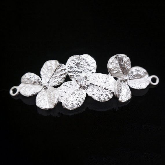 Качественная корейская фурнитура класса люкс. Компонент для бижутерии - три текстурированных листа клевера с фианитом. Можно использовать как коннектор или подвеску. Материал латунь, покрытие матовый родий. Производство: Корея. Цена за 1 штуку.