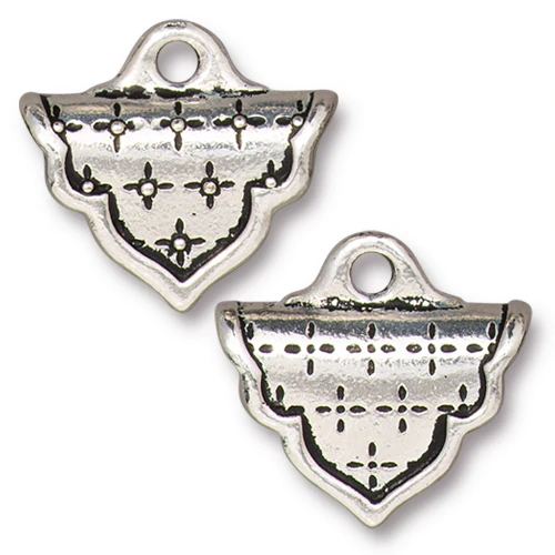 Узорные концевики-зажимы для ленты или плоского кожаного шнура шириной до 17 мм. Оттенок может отличаться от фотографии и в разных поставках. Дизайн MARRAKESH. Диаметр отверстия у петельки около 2 мм. Производство Тьерра Каст (США). Артикул производителя: 94-3229-12. Цена за пару.