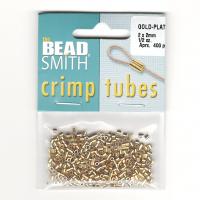 Бюджетные кримпы - трубочки размером примерно 2*2 мм. Внутренний диаметр около 1.2 мм. Цена за упаковку примерно 1/2 oz. (около 400 штук, фасуются производителем без проверки на брак). Оттенок может отличаться от фотографии и в разных поставках. Произведено американской компанией BeadSmith в Китае.