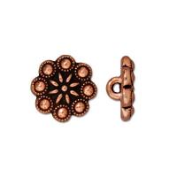 Декоративная металлическая пуговица с петелькой (на ножке). Дизайн CZECH ROSETTE (чешская розочка). Диаметр отверстия около 2 мм. Производство Тьерра Каст. Данные пуговицы декоративные, не подходят для изделий, подвергающихся стирке. Цена за 2 шт. Артикул производителя: 94-6544-18