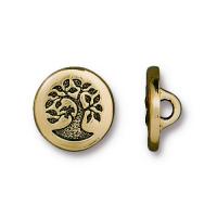 Декоративная металлическая пуговица с петелькой (на ножке). Дизайн - дерево с птицей на ветвях (SMALL BIRD IN TREE). Диаметр отверстия около 2 мм. Пуговица отлично будет смотреться в качестве застежки на браслете чан лу и других плетеных браслетах или колье. Производство Тьерра Каст. Данные пуговицы декоративные, не подходят для изделий, подвергающихся стирке. Цена за 2 шт. Артикул производителя: 94-6583-26