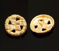 Качественная корейская фурнитура класса люкс. Круглая плетеная пуговица из латуни с матовым позолоченным покрытием 16 карат с петелькой (на ножке). Отлично подойдет в качестве застежки для плетеных браслетов и колье. Диаметр отверстий около 2.5 мм. Данные пуговицы декоративные, не подходят для изделий, подвергающихся стирке. Цена за 1 шт.
