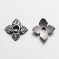 Маленький изящный обниматель (чашечка, шапочка) для бусин в форме четырех листиков. Цвет черный. Оттенок может отличаться от фотографии и в разных поставках. Цена за 5 грамм (около 40 шт, фасуются на вес без проверки на дефекты).