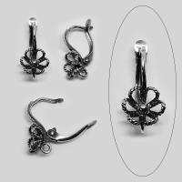 Довольно крупные, но изящные основы для серег с английской застежкой и разъемной петелькой, спрятанной за цветком. Швензы толстые и солидные. Могут немного отличаться по форме. Декоративная часть - кружевной цветочек в технике филигрань. Базовый материал латунь, покрытие - посеребрение 999 пробы с чернением. Гальваническое напыление серебром очень качественное и надежное - слой составляет около 12 мкм. Производство Россия. Оттенок может отличаться от фотографии. Размер может немного отличаться от заявленного. Цена за пару.