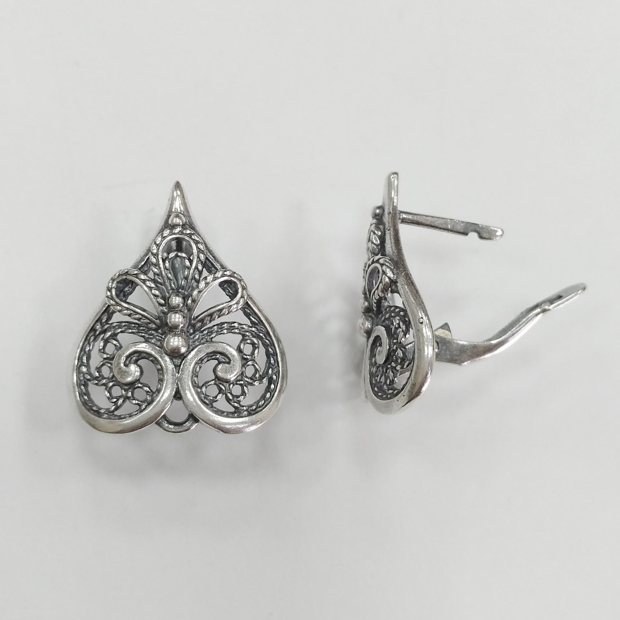 Качественная российская фурнитура для бижутерии. Довольно крупные, но изящные основы для серег с английской застежкой и неразъемной петелькой. Швензы толстые и солидные. Могут немного отличаться по форме. Декоративная часть - сердце в технике филигрань. Базовый материал латунь, покрытие - посеребрение 999 пробы с чернением. Гальваническое напыление серебром очень качественное и надежное - слой составляет около 12 мкм. Производство Россия. Оттенок может отличаться от фотографии. Размер может немного отличаться от заявленного.Цена за пару.
