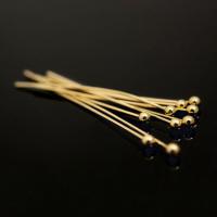 Элитная ювелирная фурнитура класса люкс из Южной Кореи. Пины с шариком, длина 3.3 см, толщина 0.511 мм (24GA), диаметр шарика около 2 мм. Материал - латунь, покрытие - позолота (гальваническое напыление). Головка на пине может быть расположена не точно по центру, пины могут быть изогнуты. Оттенок может отличаться от фотографии. Цена за 2 грамма (около 25 шт., фасуются без проверки на дефекты.)