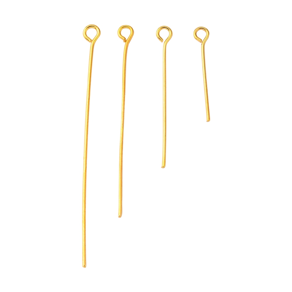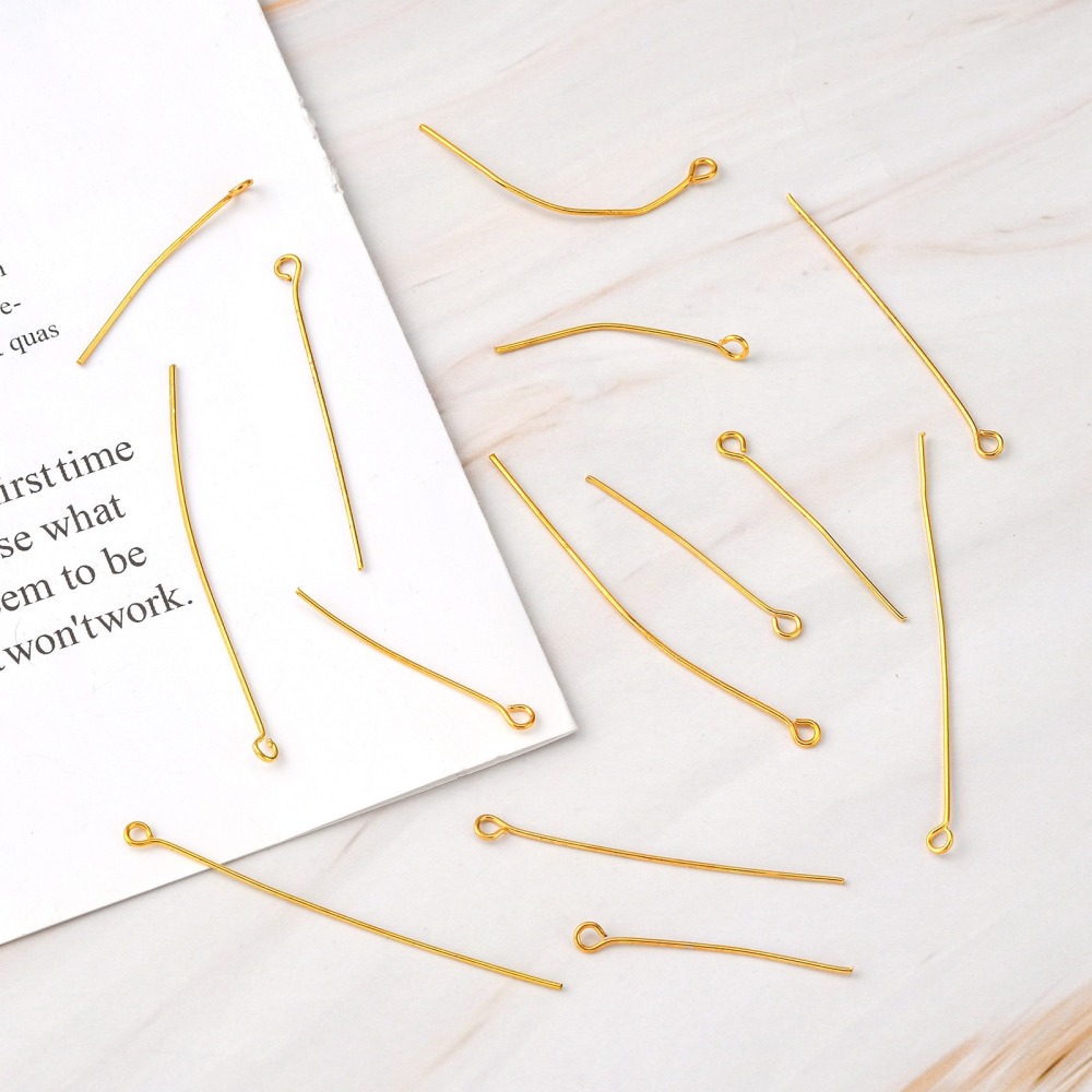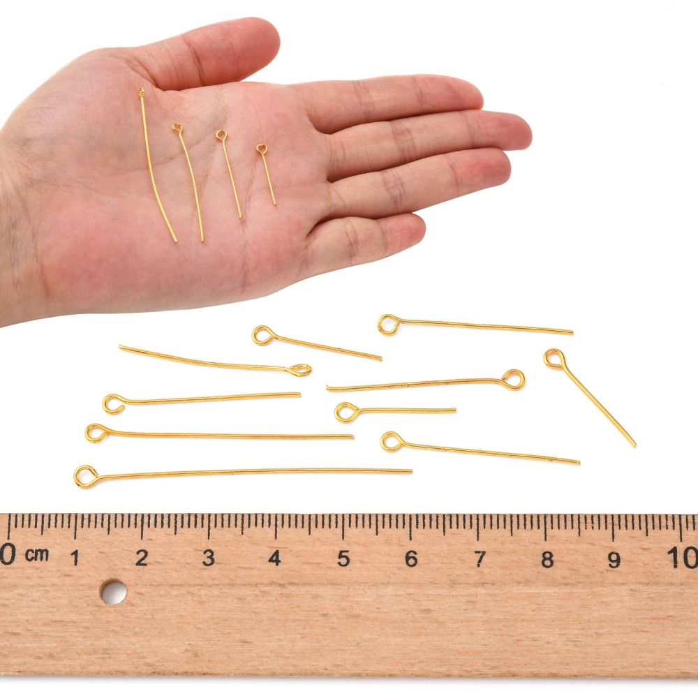 Бюджетные пины с петелькой, цвет золотой. Микс размеров: длина от 1.6 до 5 см, диаметр пинов около 0,7 мм. На покрытии возможны пятнышки. Цена за упаковку 10 грамм (около 70-90 штук в зависимости от соотношения длинных и коротких пинов).