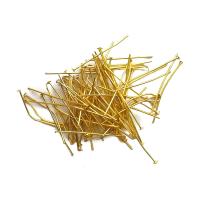 Бюджетные пины со шляпкой золотистого цвета. Длина 3 см, диаметр пина 0,723 мм, диаметр шляпки около 2 мм. Головка на пине может быть расположена не точно по центру, пины могут быть погнуты. Оттенок может отличаться от фотографии и в разных поставках. Цена за 10 грамм (около 60 шт.)
