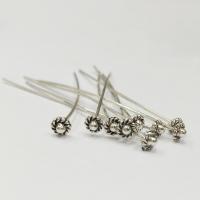 Необычные фигурные пины. Сам пин сделан из латуни, фигурная головка в форме цветка - из бижутерного цинкового сплава. Покрытие - серебро 925 пробы с чернением. Диаметр головки - около 4 мм, длина пина - 5.4 см, диаметр пина около 0,7 мм. Цена за 10 шт.