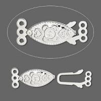Посеребренная застежка в форме овала с узором, с тремя петельками. Тип застежки - рыболовный крючок (fishhook). Оттенок может отличаться от фотографии и в разных поставках. Цена за 2 шт.