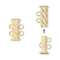 Замочек-слайдер в форме прямоугольной трубочки с бороздками, на 2 нити. Базовый материал - латунь. Золотое покрытие 18 карат. На покрытии возможны небольшие царапинки. Оттенок может отличаться от фотографии и в разных поставках. Цена за 1 шт.
