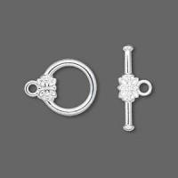 Застежка-тогл с цветочком, серебряное покрытие (925 проба). Цена за 2 шт.