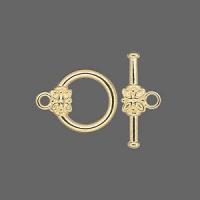 Золотое покрытие 18К (карат). Застежка-тогл с цветком. Цена за 2 шт.