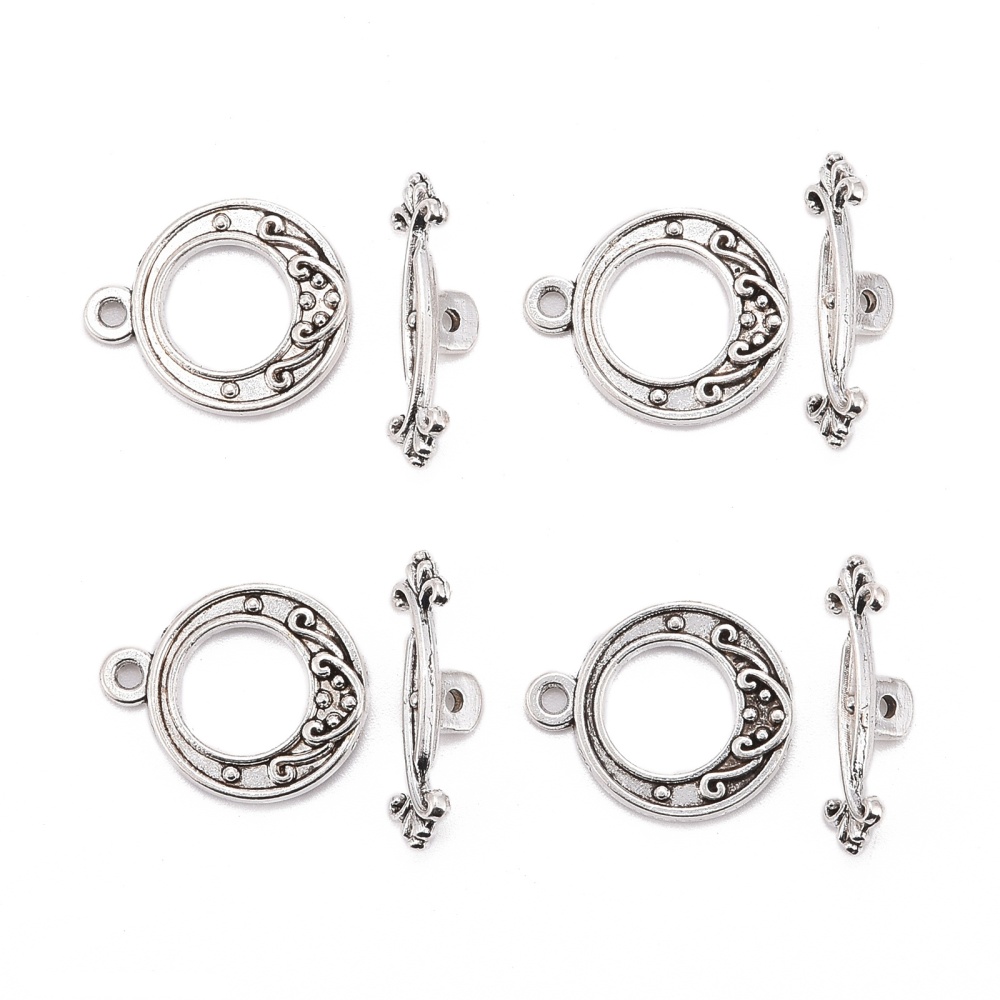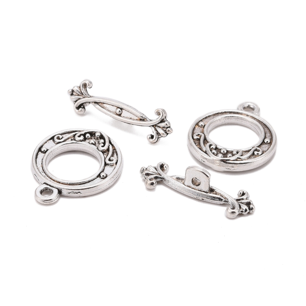 Замочек-тогл, узорный. Под античное серебро. Базовый материал - бижутерный металлический сплав, сверху покрытие серебристого цвета с чернением. Оттенок может отличаться от фотографии и в разных поставках. Размер тоггла 19*15 мм, палочки - 21*6 мм. Цена за 10 шт.