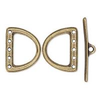 Трехкомпонентная застежка-тогл на 5 нитей. Концевики - 19*16 мм, палочка - 30 мм. Палочка присоединяется соединительным колечком к одному из концевиков, второй концевик используется как ответная часть тогла (колечко в комплект не входит). Данный тип тоглов не рекомендуется для тяжёлых украшений. Производство Тьерра Каст. Цена за 1 шт. Артикул производителя: 94-6176-27