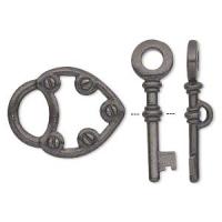 Застежка-тогл в форме замка с ключем. Замочек 25*19.25 мм, ключик 30.5*6.25 мм. Производство Тьерра Каст. Цена за 1 шт. Артикул производителя: 94-6170-13. Данный вид покрытия у TierraCast является не очень стойким: при трении быстро стирается/царапается.