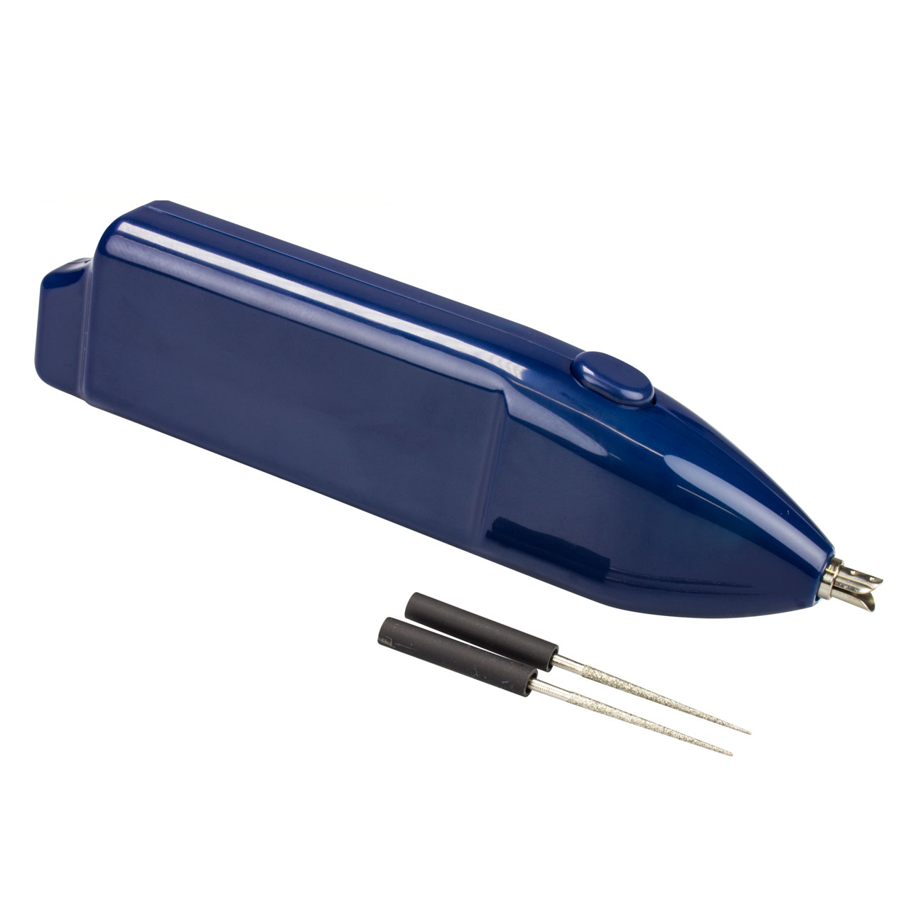 Удобный ювелирный электро-надфиль, работающий от 2 батареек АА (в комлпект не входят). В комплекте 2 сменные насадки из качественной стали с алмазным напылением. Прекрасно подходит для расширения отверстий в дереве, пластике, жемчуге, керамике. Также надфилями можно убрать заусенцы на металлической фурнитуре и подвесках. В процессе работы рекомендуется смачивать рабочую поверхность инструмента водой. Товар произведен американской компанией Beadalon в Тайване. Цена за 1 набор.
