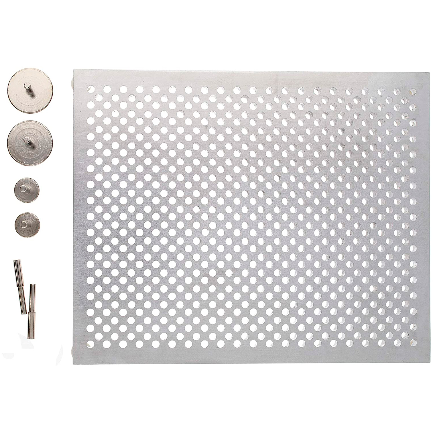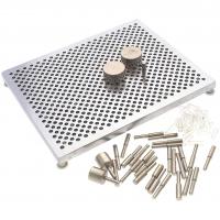 Металлический набор для работы с проволокой Wig A Ma Jig Deluxe (аналог WigJig и Thing A Ma Jig Deluxe). Изготовлен из закаленного алюминия, очень прочный и надежный. В комплекте 1 алюминиевая доска, 30 металлических колышков - насадок (20 малых, 6 средних, 2 больших и 2 очень больших), силиконовые закрепители для колышков. В комплект также входит подробная инструкция с примерами (на английском языке + картинки). Рабочая площадь поверхности составляет около 140*114 мм. Допустимо смещение 1-2 отверстий (могут быть просверлены не равномерно). По почте отправляется только по предоплате. Инструмент произведен американской компанией Bead Smith в Китае.