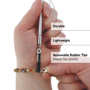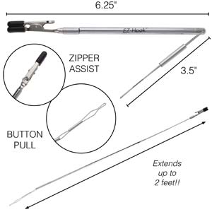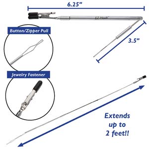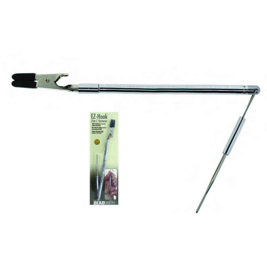 Необычное приспособление EZ-Hook 3 в 1 - уникальный инструмент для легкого самостоятельного застегивания браслетов, молний и пуговиц. Телескопическая ручка и съемные силиконовые насадки на кончиках делают это приспособление еще удобнее. Произведено американской компанией BeadSmith в Китае. Цена за 1 шт.
