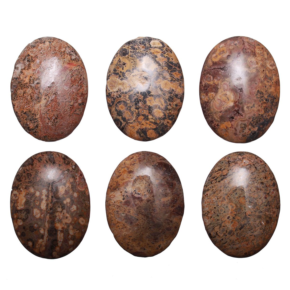 Кабошон из натурального камня - океанической (леопардовой) яшмы. Кабошоны отличаются по цвету и рисунку, а также по толщине: при заказе нескольких штук мы постараемся подобрать похожие. На камнях возможны небольшие неровности естественного происхождения. Цена за 1 шт.