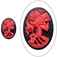 Акриловая японская камея, цвет красный на черном. Готичная версия классической камеи с девушкой. Цена за 1 шт.
