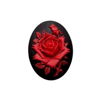 Японская акриловая камея высокого качества. На камее изображен цветок розы красного цвета на черном фоне. Оттенок может немного отличаться от фотографии. Цена за 1 шт.
