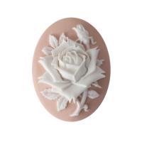 Японская акриловая камея высокого качества. На камее изображена роза белого цвета, фон персиково-розовый. Цена за 1 шт.