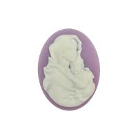 Акриловая японская камея с изображением девы Марии, держащей на руках младенца. Цвет белая на фиолетовом. Цена за 1 шт.