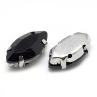 Стеклянный страз, установленный в пришивную оправу с цапами. Форма челнок (листик, глаз), размер страза 12*6 мм, оправы 11*5 мм. Цвет страза - непрозрачный чёрный. Базовый материал оправы - латунь, покрытие темно-серебристого цвета. Цена за 5 грамм (около 13 штук).