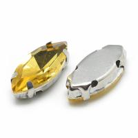 Стеклянный страз, установленный в пришивную оправу с цапами. Форма челнок (листик, глаз), размер страза 12*6 мм, оправы 11*5 мм. Цвет страза - желтый. Базовый материал оправы - латунь, покрытие темно-серебристого цвета. На стразах возможны небольшие царапинки. Цена за 5 грамм, около 14 шт., фасуются без проверки на дефекты.