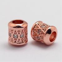 Элитная ювелирная фурнитура премиум класса - Милано люкс (Milano Lux), качественный элемент для создания бижутерии. Эффектная бусина - укороченная трубочка с большим отверстием (цилиндр с ромбиками). Эта бусина будет отлично смотреться на браслетах и колье. Диаметр отверстия примерно 3 мм. Бусина декорирована кристально-прозрачными стразами - фианитами (Cubic Zirconia– кубик циркония, CZ, цирконы) в технике микроинкрустация паве. Материал - латунь, сверху покрытие светло-медного цвета. Цена за 1 штуку.