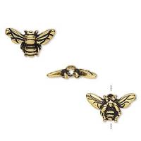 Трехмерная металлическая бусина - пчелка. Базовый материал - бижутерный сплав на основе олова. Покрытие - позолота с чернением, оттенок может отличаться от фотографии и в разных поставках. Производство Тьерра Каст (Tierra Cast, США). Размер отверстия 1.5 мм. Цена за 1 шт. Артикул производителя: 94-5519-26