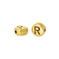 Двусторонняя металлическая бусина-буква золотого цвета (английский алфавит). Диаметр отверстия - около 0,75 мм. Бусины могут отличаться по оттенку. Цена за 15 шт.