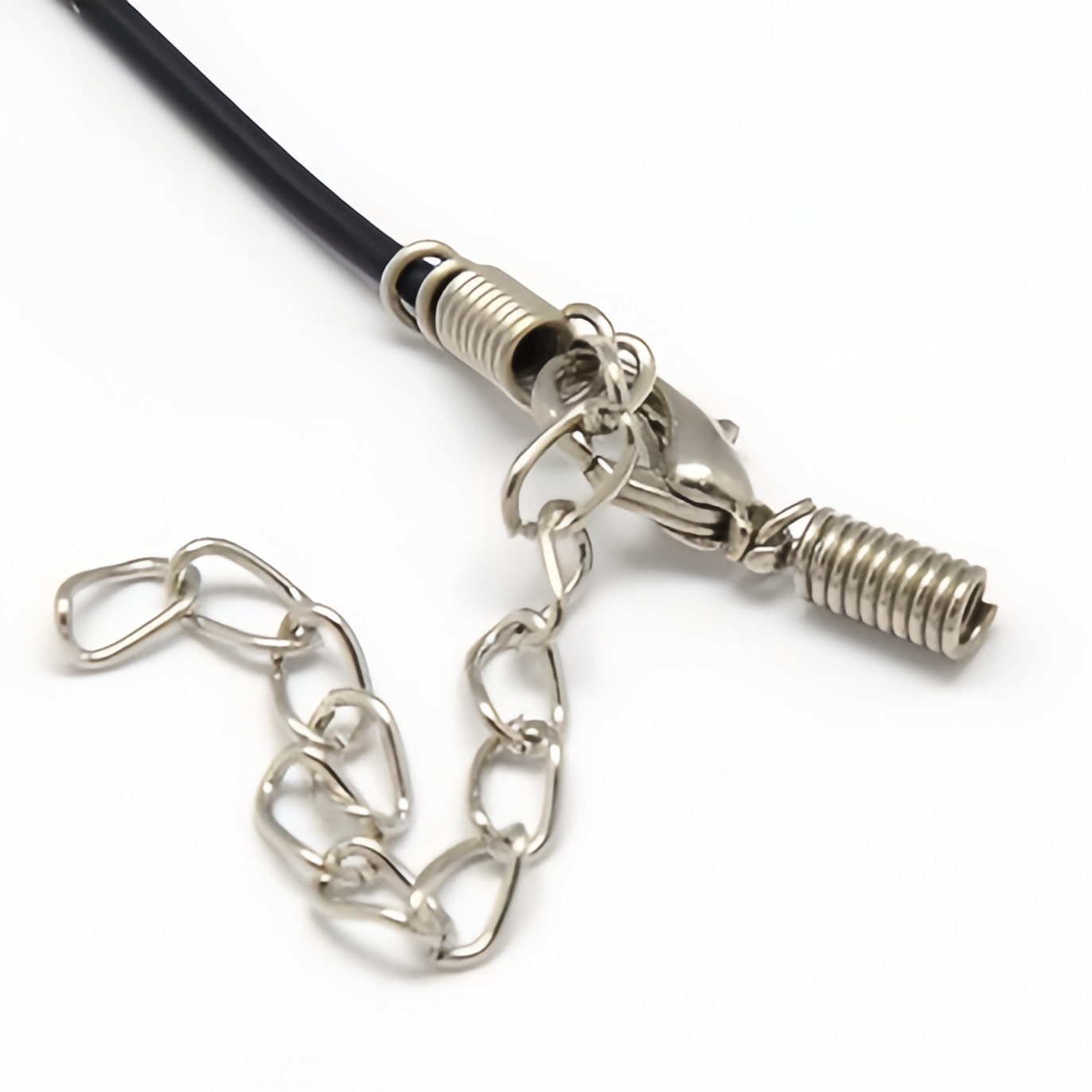 Удобный набор - основа для создания колье, кулона или браслета длиной до 51 см с учетом удлинителя. В набор входит резиновый (каучуковый) шнур черного цвета толщиной 1.5 мм, обжимные концевики - пружинки (пара), застежка-карабин 9*5 мм, удлиняющая цепочка. Фурнитура стального цвета. Цена за 5 наборов.