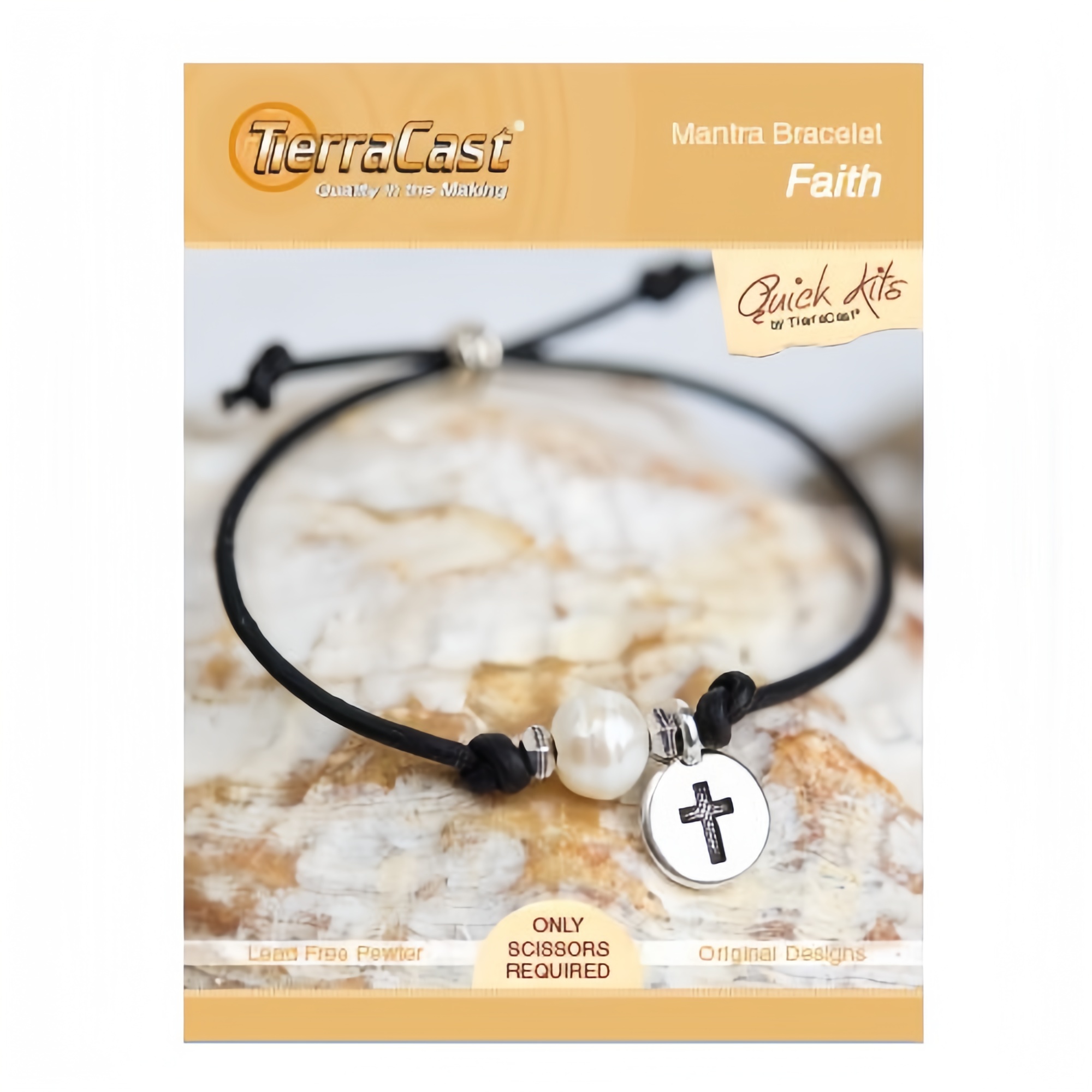 Набор для создания кожаного браслета с металлическими посеребренными компонентами и культивированным пресноводным жемчугом. Диаметр готового браслета - до 23 см. Уровень сложности: легкий (1 из 3). Производство - американская компания TierraCast (ТьерраКаст, США). Дизайн Mantra Bracelet Faith (Мантра браслет Вера). Артикул поставщика: SP-6938-00 В набор входит инструкция на английском языке (мастер-класс) и все необходимые материалы: 1. Бусина из культивированного пресноводного жемчуга барокко (может отличаться от фотографии, на бусине возможны щербинки и неровности естественного происхождения) - 1 шт. 2. Бусины-рондели неправильной формы под античное серебро - 2 шт. 3. Посеребренная подвеска Крест - 1 шт. 4. Посеребренная бусина-рондель - 1 шт. 5. Черный кожаный шнур 2 мм - 50 см. Для сборки Вам понадобятся: ножницы, суперклей (в набор не входят). Отличный подарок для новичков. Такой браслет может являться амулетом (талисманом, оберегом), способствующим чистоте помыслов, вере, милосердию. Цена за 1 набор.