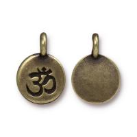 Слегка выпуклая односторонняя подвеска с изображением символа Ом (знак ॐ). Базовый материал - бижутерный металлический сплав на основе олова, покрытие бронзового цвета (оксидированная латунь с чернением). Оттенок может отличаться от фотографии и в разных поставках. Производство Тьерра Каст (Tierra Cast, США). Артикул производителя: 94-2404-27. Цена за 2 шт.