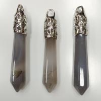 Подвеска - каменный кристалл (маятник) из агата серого цвета, держатель из бижутерного сплава с темно-серебристым покрытием. Подвески могут существенно отличаться по цвету, форма и размер также могут немного отличаться. На кристаллах могут быть небольшие щербинки естественного происхождения. Цена за 1 шт.