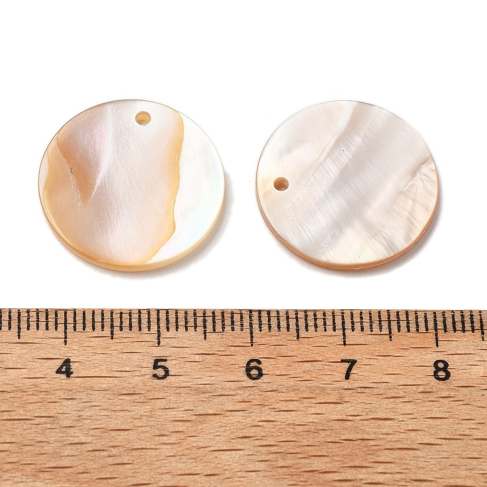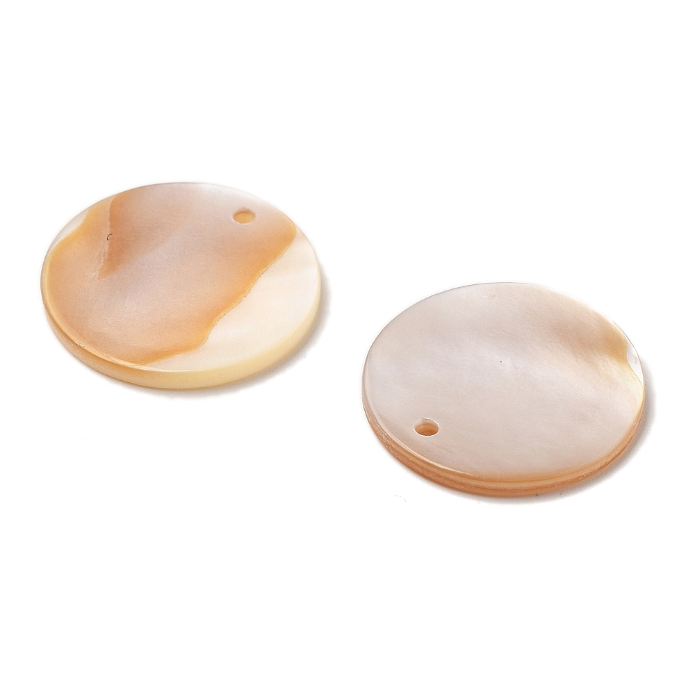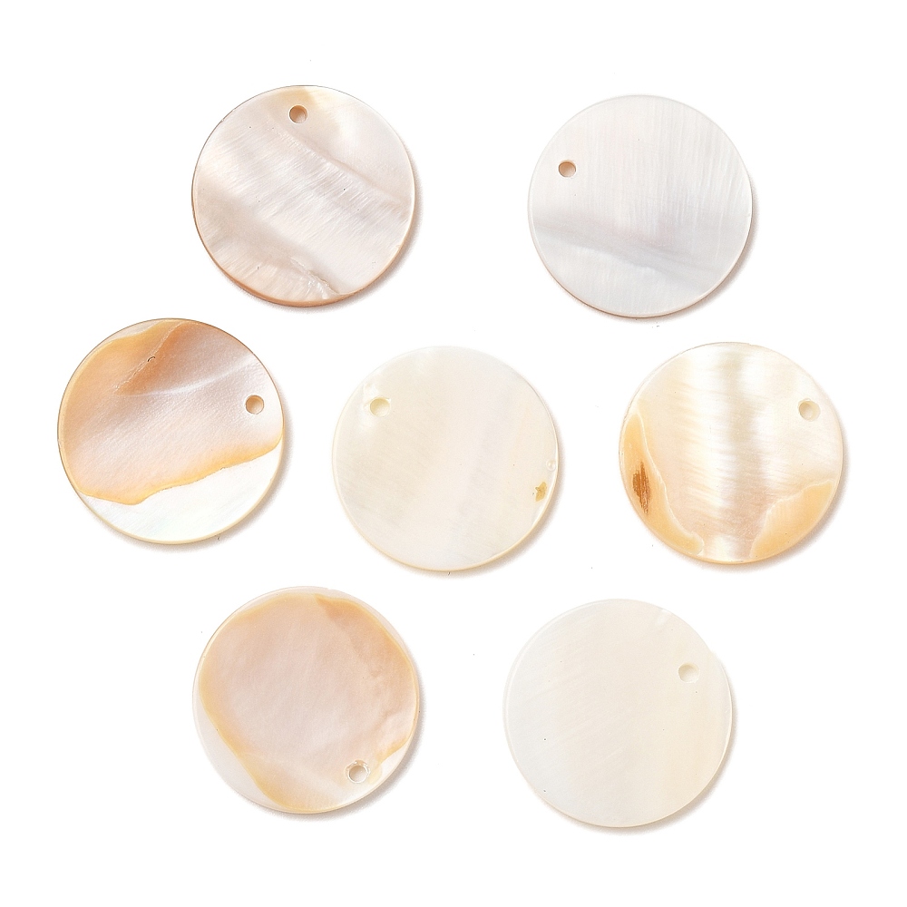Плоская круглая подвеска (диск) из натурального перламутра. Подвески могут немного отличаться по размеру и форме. Цвет у разных подвесок может варьироваться от белого до розовато-бежевого. На перламутре возможны неровности и разводы естественного происхождения. Диаметр отверстия около 1.5-2 мм. Эти лёгкие, изящные подвески отлично подходят для создания эффектных серег, кулонов, декора. Цена за 10 шт.